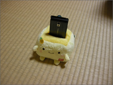 奥さんが勝ってくれた携帯電話置き(?)とともに眠っていたのだが、ふと目が覚めると携帯電話だけがありました。